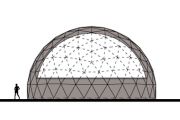 Die äußere weiße Hülle kann auch individuell gestaltet und bedruckt werden. Die visuelle Reduktion der Dom-Architektur dient als Ausgleich zu den fesselnden audio-visuellen Medieninhalten im Inneren der Kuppel und verführt die Besucher zu einem sinnlichen, einhüllenden Erlebnis.