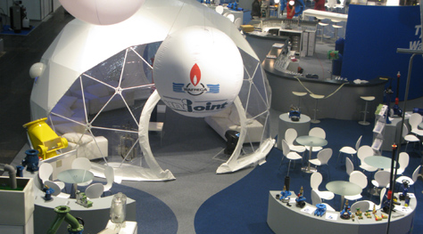 As lounge with a unique atmosphere, the geodesic dome impressed as the largest bubble within a fizz of air and water bubbles decorating the entire fair stand. In the midst of the fair hectic, the 120,000 visitors from about 163 countries found the serenity to talk, find information and counselling within the “Space for Ideas”.