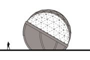 Die äußere weiße Hülle kann auch individuell gestaltet und bedruckt werden. Die visuelle Reduktion der Dom-Architektur dient als Ausgleich zu den fesselnden audio-visuellen Medieninhalten im Inneren der Kuppel und verführt die Besucher zu einem sinnlichen, einhüllenden Erlebnis.